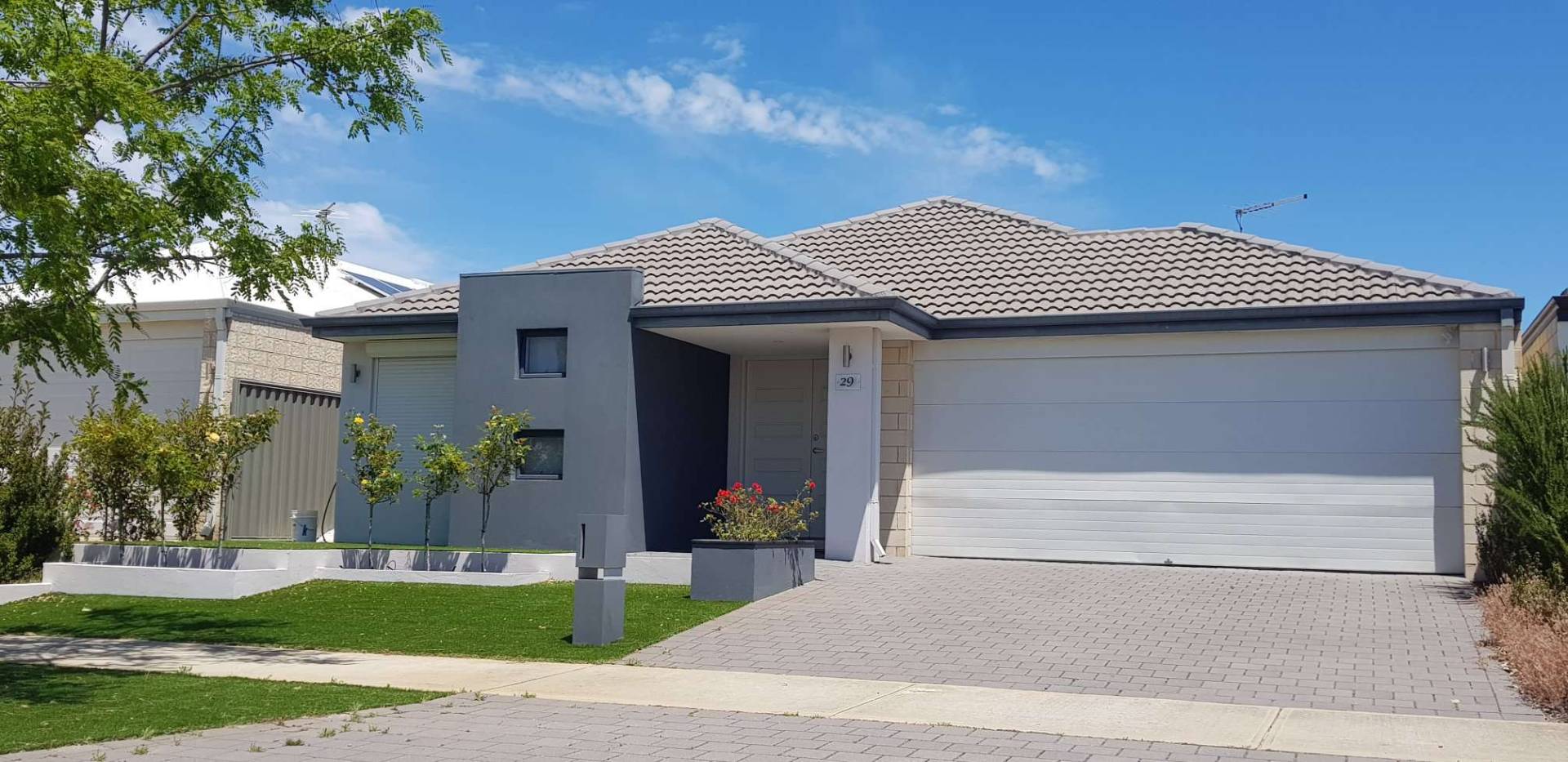-Stunning elevated street frontage with easy care gardens