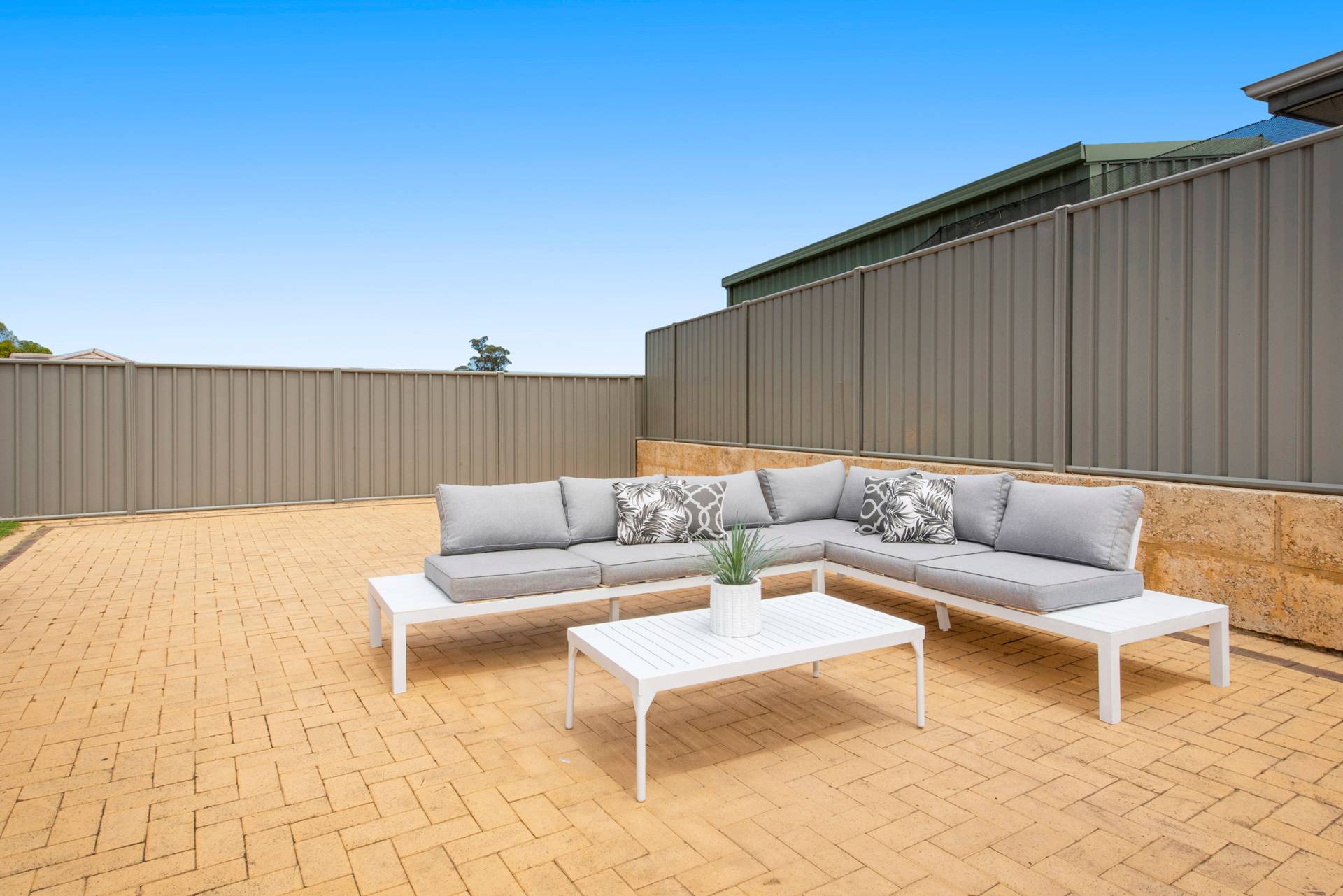 • Easy to maintain paved backyard with a good size grass patch for the kids and pets