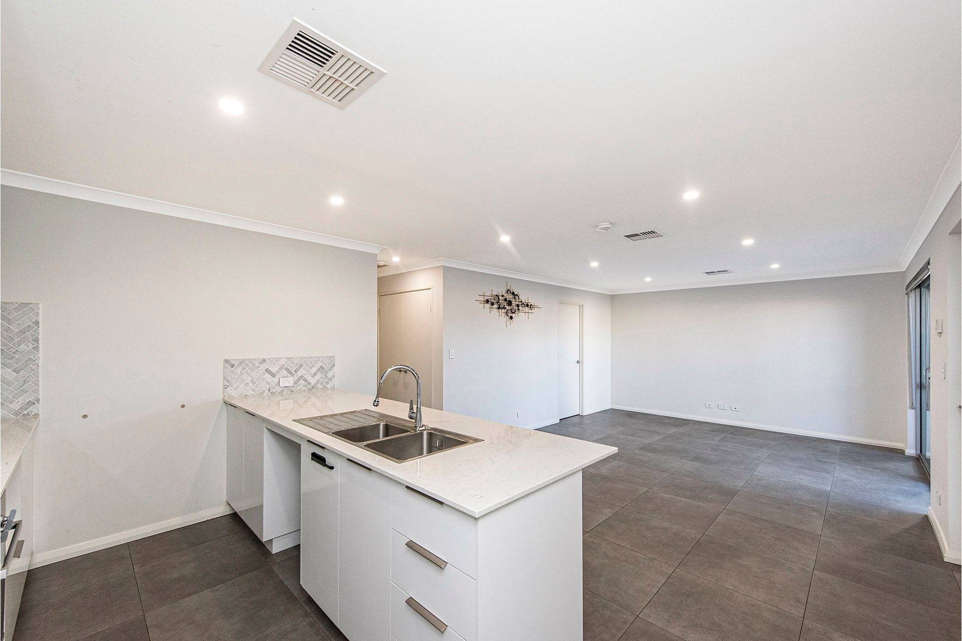 - Large open plan living.
